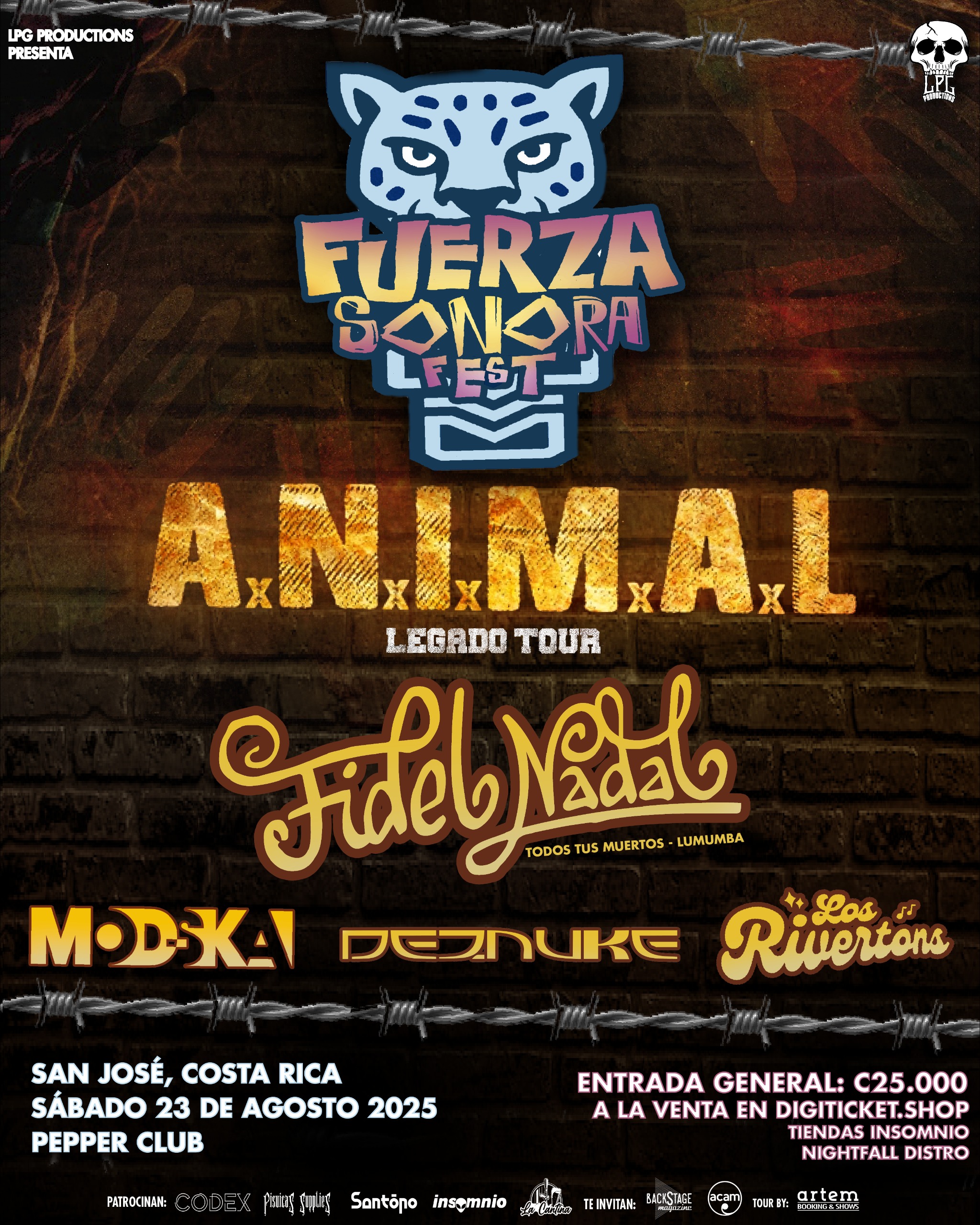 Será el sábado 23 de agosto y se llevará a cabo en Pepper Club, Curridabat, es producido por LPG Productions. Participarán A.N.I.M.A.L. grupo liderado por Andrés Giménez y referente del metal latino. Su concierto pertenece al Legado Centroamérica Tour 2025, nombre de su más reciente disco Legado, publicado en abril del 2025.